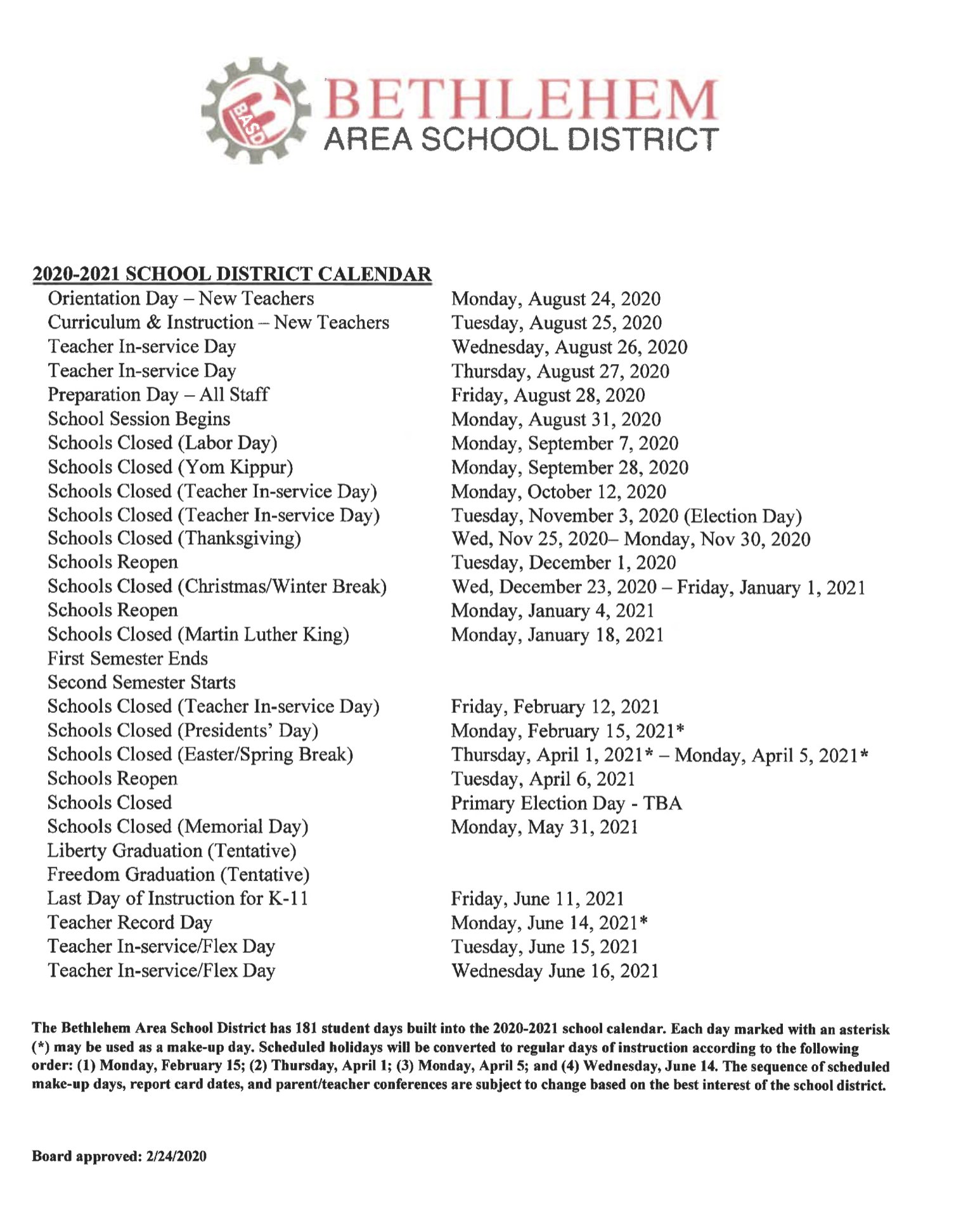 The bethlehem area school district calendar 2021 is the perfect reminder. Please keep checking this webpage for up-to-date scheduling changes if any. 2019-2020 School Year Calendar 2019-2020.