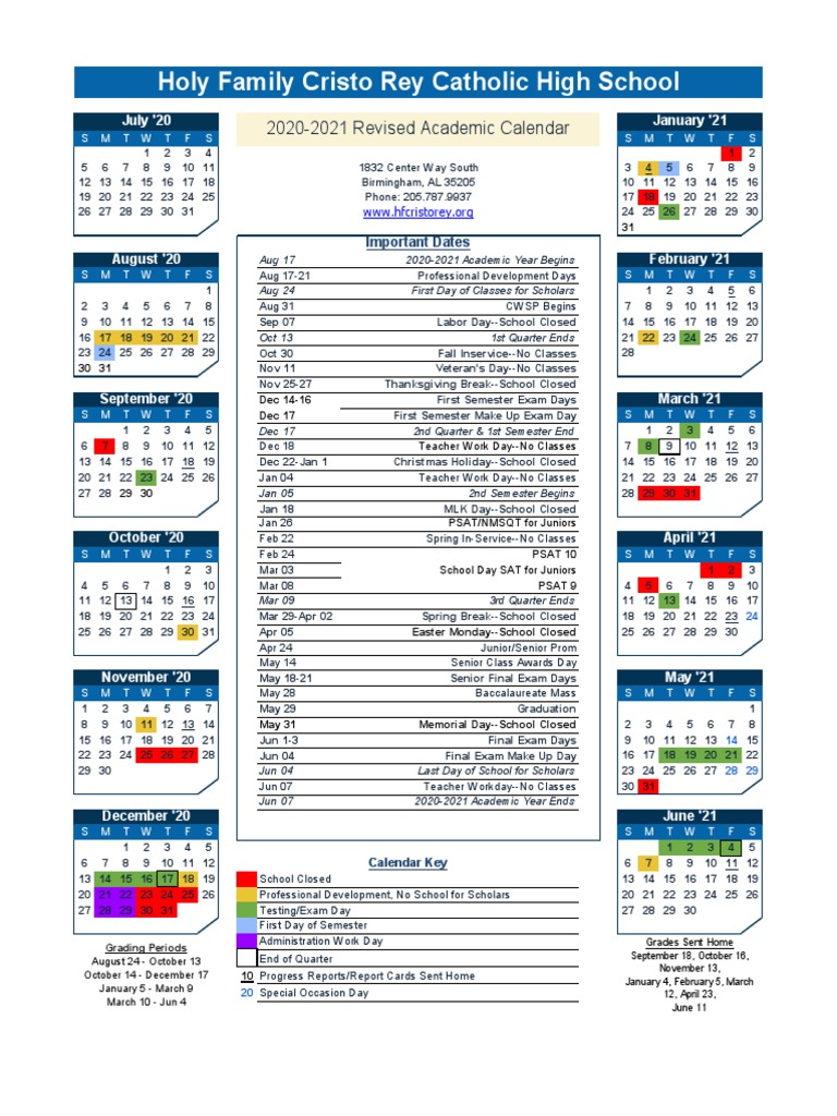 Academic Calendar Holy Family Vps