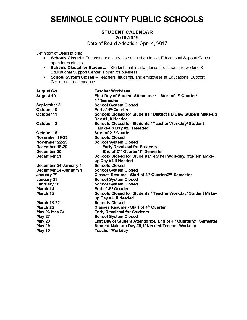 Seminole County Public School calendars. Seminole County School Calendar has a special position in everyones life and every individual dream of studying in a good school because if any relative or friend asks us that in which school we study so if we name a. Seminole County Public School Calendar.