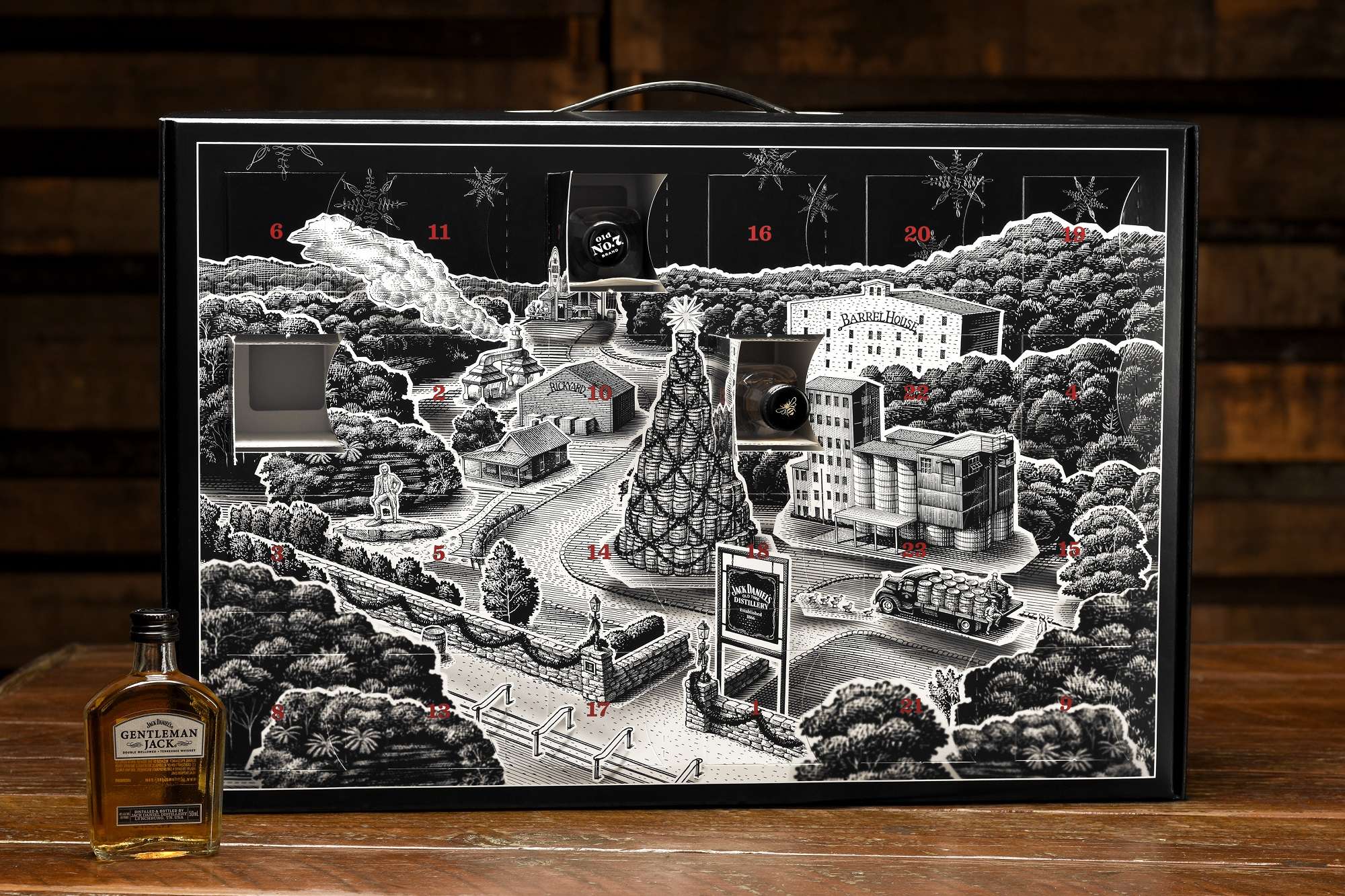 Jack Daniels Advent Calendar. Case in point last year Jack Daniels launched a whiskey advent calendar in the UK. The 2020 holiday advent calendar also includes features premium items four shot glasses with logos from the Jack Daniels family of brands. The festive surprises include 20 x 50ml bottles of Jack Daniels and 4 surprise gifts.